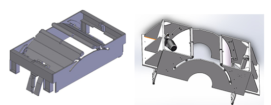 由電動推桿,關節(jié)軸承等件組成,可以方便的將車輛舉升并對中至轉(zhuǎn)鼓的高點,該機構共有四套,其結構如上圖。