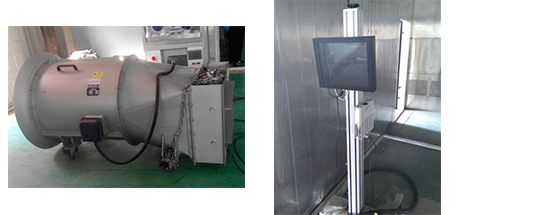 車輛迎面風機系統(tǒng)可模擬車輛在真實道路上受到的迎面風,并起冷卻作用。此風機可前后移動,動力電纜布置可調(diào)。