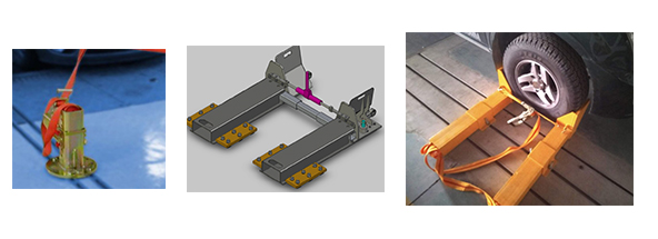 能限制車輛橫向和縱向的移動≤±12.7mm,且不應使試驗車輛的驅(qū)動輪產(chǎn)生附加的正應力,并能適應不同車輛的安裝。